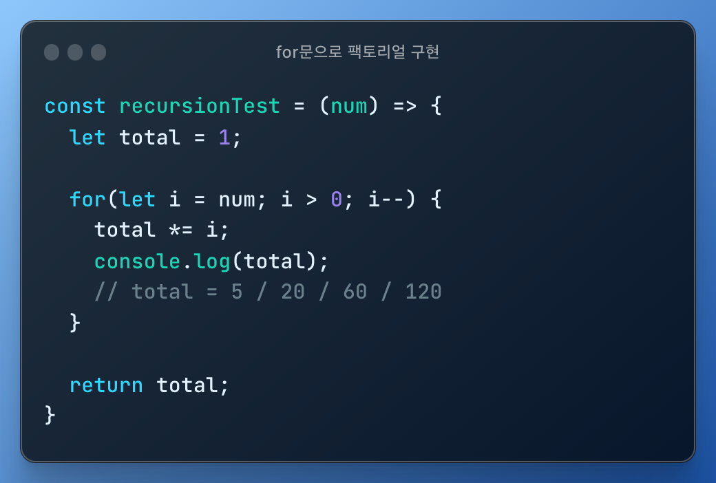 | 재귀로 팩토리얼 구현