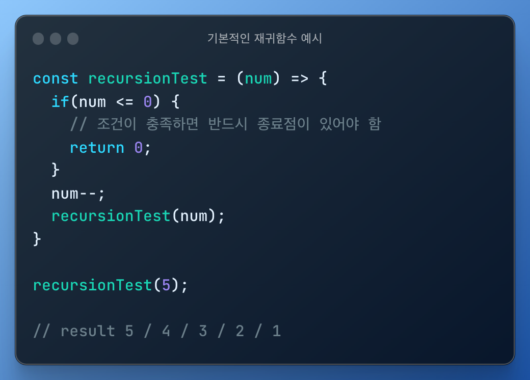 | 기본적인 재귀 함수 예시